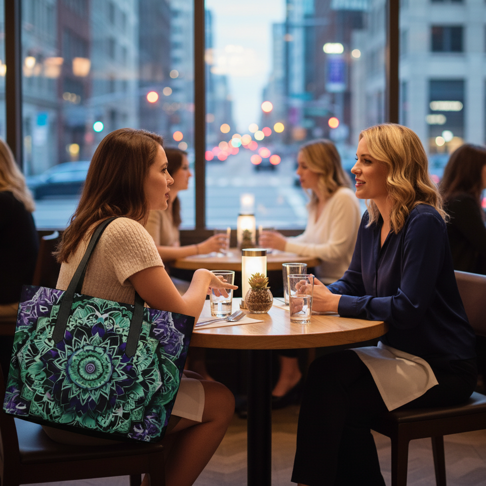Pack your style with this spirited vegan leather tote featuring Hay~ley's Mandala's bold graffiti art. The textured pebble leather keeps things looking fresh while inner pockets handle the heavy lifting. Lightweight yet built to last—your perfect companion for school, work, travel, or just being fabulous every day.
